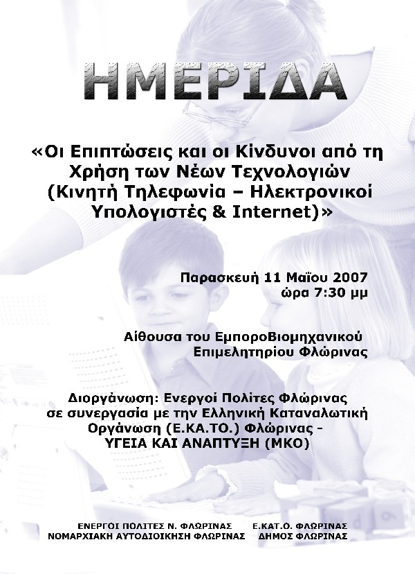 Οι Ενεργοί Πολίτες Ν. Φλώρινας σε συνεργασία με την Ελληνική Καταναλωτική Οργάνωση (Ε.ΚΑΤ.Ο.) Φλώρινας διοργανώνουν Ημερίδα με τα εξής θέματα :